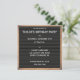 Este convite divertido em forma quadrada tem a aparência de uma placa de estilo quadro de letras clássico em preto colocado em uma moldura de madeira marrom. Todo o texto em letras brancas está pronto para o seu toque personalizado para que você possa criar o convite perfeito para aniversários, aniversários de casamento ou festas para qualquer ocasião.