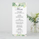Este moderno cartão de janto floral tropical é perfeito para um casamento de destino. Essa design encantadora e atraente apresenta flores verdes e rosa deliciosas, bem arrumadas em quadros geométricos, evocando felicidade e beleza natural. Este menu pode ser usado para recepção de casamento, janto de ensaio, chá de panela ou qualquer evento.