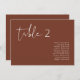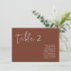 Este gráfico de números de tabela apresenta um tipo de letra escondido à mão e um design moderno minimalista com uma combinação de cor branca e ferrugem. Altere facilmente o número e os nomes, juntamente com todas as cores, para corresponder totalmente ao seu evento.