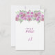 Numerar suas mesas de recepção com um cartão de mesa de recepção de pedras cor-de-rosa. O design de mesa de placa de apresenta um fundo branco com um buquê de peões cor-de-rosa e folhagem verde. Material adicional disponível com esta design também.