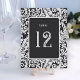 Convite Placa de Mesa Floral Branca e Preta Moderna