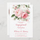 Cartão de noivado romântico com peônias cor-de-rosa pinceladas, rosas brancas e verde macio num design floral eterno, perfeito para celebrar o amor no estilo elegante.