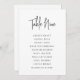 Cartões simples de números de tabela 5x7 em preto e branco clássico fazem uma declaração elegante no seu casamento ou evento. Design apresenta "mesa [número]" em letra de script manuscrita, com nomes de convidado individuais abaixo na tipografia da serif do eterno. Design repete-se de ambos os lados.