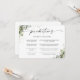 Cartão de previsão de Chá de fraldas Floral Eucalyptus. Este Convite para na moda e Chá de fraldas elegante apresenta uma linda aquarela pintada manualmente Eucalyptus Floral Greenery. Encontre itens correspondentes na Coleção de Verduras Florais Eucalyptus.