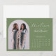 Esta proposta/placa de madrinha de casamento de porta-pontas de foto apresenta um design mínimo e moderno com um arco que contém sua imagem com sua dama de pontas. E um calendário onde você irá adicionar um coração na data com um lápis para adicionar seu próprio toque ao cartão.