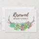 Este letreiro de "reservado" de casamento com suculentas florais rústicas boho é perfeito para um casamento com tema rústico country ou deserto. O design é duplo lado (impressões em ambos os lados) e apresenta lindas suculentas coloridas verdes, rosa e roxas dispostas em uma grinalda de galhos e acentuadas com confetes dourados falsos. Use esses cartões para reservar cadeiras ou mesas na cerimônia ou recepção do seu casamento. Desenhado com carinho por Miriam na Fresh & Yummy Paperie. Para itens coordenados, por favor visite minha loja Zazzle: