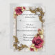 Bonito rosas vermelhas e moldura de folha dourada. Este belo RSVP de casamento/cartão de resposta está pronto para ser personalizado para o seu dia especial de casamento. Personalize a placa alterando o texto nos campos fornecidos frente e verso. Você pode alterar o estilo, o tamanho e a cor da fonte, bem como o tipo e o estilo do papel.