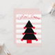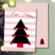 Mude seus desejos de Natal com esta design de Natal listrada moderna. Ainda usando as cores sazonais tradicionais, esse design usa rosa, preto e vermelho. A árvore preta tem decorações vermelhas penduradas nela. Rosa, Preto e Vermelho. Há espaço para a sua mensagem de feriado no verso com a palavra "Amor" que pode ser apagada se não quiser usá-la. Saudações de Natal modernas e simples.