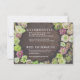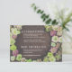 Personalizar este convite de casamento para fornecer informações adicionais ao convidado. Mostrado com o site de casamento e informações sobre os blocos de hotel. Texto branco nítido sobre um fundo de madeira escura, cercado por um anel de flores vivas, faz deste cartão um destaque. Este design faz parte da nossa Coleção Hellebore Harvest da Caixa de Joias. Visite nossa loja para mais designs.