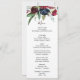 Este cartão de cardápio de janto floral de marinho burgundy moderno é perfeito para um casamento simples. A design apresenta flores vermelhas, burladas, marinhos, roxas, azuis e esbranquiçadas lindamente pintadas à mão e folhas verdes. Este menu pode ser usado para recepção de casamento, janto de ensaio, chá de panela ou qualquer evento.