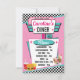 Convite Placa do menu Retro Diner Pink & Teal da década de