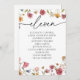 Esta Placa Floral Sentada é a combinação perfeita de elegância e funcionalidade para casamentos, recepções e eventos formais. Apresentando um tema floral maravilhosamente projetado, este gráfico de assentos ajuda a guiar seus convidados sem esforço e, ao mesmo tempo, adiciona um toque sofisticado à sua decoração.