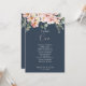 Esta tabela floral de rosa de eucalipto é perfeita para um casamento rústico. A design apresenta flores rosa, pinceladas, amarelas, com folhas de eucalipto em fundo azul-marinho escuro. A placa impressão verso (frente e verso)