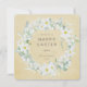 Daffodilos brancos pintados à mão, lírio do vale e folhagem dispostos em uma coroa de Páscoa contra fundo amarelo texturizado. Todo o texto é totalmente editável para que você possa facilmente alterar a mensagem e o estilo/cor/tamanho da fonte. A parte de trás foi deixada vazio, então há espaço para adicionar uma mensagem mais longa se você quiser. Elementos de coordenação disponíveis.