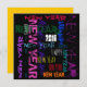Projetado para 8 letras: NOVO ANO (7 + espaço) com ano+ feliz. Design no convite de placa plana quadrada com fundo preto (em frente) e fundo amarelo no verso. Você pode mudar facilmente a cor do plano de fundo e o texto (cor, fonte, tamanho e posição) clicando no botão personalizar ou personalizar. Cartão de saudação, guardanapo de papel, placa de papel, saco de presente e muito mais... Alegria e saudações não convencionais para o Feliz ano novo 2019.