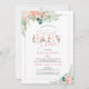 Se vocês não podem se reunir, comemore a futura mãe em um chá de fraldas virtual online utilizando Zoom, Facebook ou conexão similar à internet. O convite apresenta rosa dourado e buquês florais cor-de-rosa pincelados e tipografia moderna de scripts para o título CHÁ DE FRALDAS VIRTUAL.