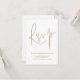 Convite Placa RSVP de Casamento de Script Dourado de Códig