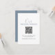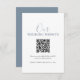 Economize em papel e dinheiro com esta placa rsvp simples de aquarela com código QR. Adicione sua personalização à caligrafia e à tipografia serif. A placa se reverte para uma cor azul sólida de cinza. Todas as cores são personalizáveis. Para mais convites de casamento, visite www.zazzle.com/dotellabelle