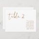 Este gráfico de números de tabela apresenta uma fonte escura escrita à mão e um design moderno minimalista com uma combinação de cor branca e laranja queimada. Altere facilmente o número e os nomes, juntamente com todas as cores, para corresponder totalmente ao seu evento.