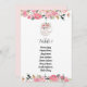 Cartão com número de mesa com flores cor de água rosa, verde e bule recheado floral. Personalize com suas informações ou clique em "clique para personalizar mais" para ajustar o tipo de fonte, o tamanho e a cor.