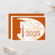 Uma silhueta de um jovem em seu boné e vestido. Designs florais no fundo. O fundo tem um fundo laranja com letras brancas para os anúncios de graduação.