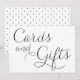Lindas placas de cartões e presentes com um padrão de escrita caligráfica preta delicada e bolinhas. Este cartão plano será perfeito para casamentos e eventos semelhantes. Disponível em outras cores.