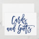 Placa de casamento elegante e manuscrita que diz "Cartões e Presentes" em azul-marinho