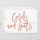 Placa de casamento elegante e manuscrita com dizeres 'Cartões e Presentes' em Rosa