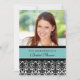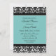 Chá de panela personalizado de convites para modelos de fotos em azul-turquesa elegante, azul-turquesa, preto-e-branco, cor damasco floral clássica elegante e feminina, personalizável com os detalhes do seu chá. Também disponível em cartões de agradecimento e convites para a festa noiva.
