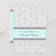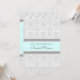 Convites de chá de panela em elegante azul-turquesa-azul-turquesa-claro, cinzas e padrão clássico de damascos florais brancos, chic e feminino, personalizáveis com seus detalhes de chá. Também disponível em cartões de agradecimento e convites para a festa noiva.