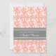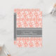 Convites de chá de panela no elegante cor-de-rosa-laranja-pêssego, cinzas e padrão clássico de colheita floral clássico, chic e feminino, personalizáveis com os detalhes do seu chá. Também disponível em cartões de agradecimento e convites para a festa noiva.