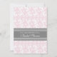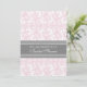 Convites de chá de panela elegantes, cor-de-rosa-claro, cor-de-rosa-claro, cinzas e padrão clássico de damasco floral, chic e feminino, personalizáveis com seus detalhes de chá. Também disponível em cartões de agradecimento e convites para a festa noiva.