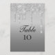 Cartões de números da Tabela de Casamento com brilho de cor prateada.
