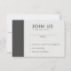 Mantenha seus detalhes de casamento simples e elegantes com essas cartas de RSVP minimalistas. Projetados com linhas limpas e tipografia moderna, eles são o complemento perfeito para um casamento contemporâneo. Os convidados podem responder facilmente ao apreciarem o eterno e o estilo sofisticado. Personalize com seus nomes, data do casamento e opções de resposta para combinar o tema do casamento sem esforço.