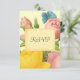 Cartões RSVP personalizados com letras de script e rosas botânicos elegantes, cor-de-rosa e amarelo, com borboletas azuis pastel decorando o buquê. Clique em Personalizar para alterar as fontes e até mesmo salvar seu design para mais tarde.