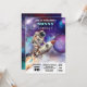 O Convite de festas Intergaláctico do Espaço Exterior explodiu em uma celebração cósmica com este maravilhoso convite de festas com tema de aquarela espacial! Com uma mistura mesmerante de blues, roças e negros que se unem para criar um cheio galáxico de estrelas, esta design está fora deste mundo. Completado com planetas aquosos e um astronauta voando pelo espaço em uma fogueira, este convite dá o tom perfeito para uma aventura intergaláctica!
