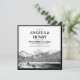 O convite para o casamento em paisagem das montanhas modernas russas apresentando belas paisagens preto-e-branco com montanhas texturizadas, nuvens, lago e árvores e o fundo consiste em um simples fundo preto com uma opção de URL do site. Personalize todo o texto deste cartão. Você pode personalizá-lo pressionando o botão (Personalizar). Se quiser personalizá-lo mais, vá para a opção (Clique para personalizar mais). Dimensão: 5,25" x 5,25" personalizável: Sim, Crie o seu. — A PERFECÇÃO —