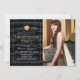 Este convite de festa de formatura chic e clássico drive-by/drive-thru apresenta sua foto e um fundo preto com um boné de formatura em faux gold glitter e uma partitura. O verso apresenta um fundo preto com uma partitura. Personalize-o para as suas necessidades. Você pode encontrar produtos correspondentes na minha loja.