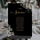 Estes elegantes números de mesa de casamento gótico preto e dourado com rosas florais podem ser personalizados com o plano de assentos dos seus convidados em tipografia chic. Os cartões são impressos na frente e no verso (dupla face). Projetado por Thisisnotme©