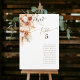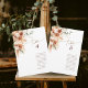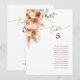 Adicione um toque de elegância à recepção do seu casamento com este simples plano de número de mesa de casamento com escrita boêmia. Projetado com um estilo simples, porém sofisticado, apresenta uma escrita em caligrafia, folhagens botânicas de eucalipto e tipografia única. Os tons de laranja queimado e terracota criam um clima quente e boêmio que complementa qualquer ambiente elegante ou formal.