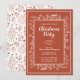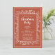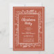 Convite de festa de Natal moderno e elegante. Ilustração decorativa de plantas desenhadas à mão, folhas e bagas em fundo vermelho terracota. Adicione seu texto.