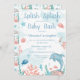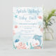 Doce Splish Splash Baby Bash ocean animais convite para chá de fraldas. Design feito em aquarelas com conchas marinhas submarinas, peixes, bolhas e outros animais fofos. Um convite perfeito para um chá de fraldas, ou para um bebê ou para uma menina.