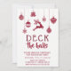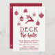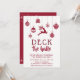 Convite da festa natalícia de Natal do estilo do vintage "plataforma tema dos salões" convidar a família, os amigos, os vizinhos e os colegas de trabalho a ser parte de sua árvore de Natal do divertimento decorando o partido. Lê a "plataforma os salões" no divertimento, letras vermelhas. A parte superior indica pendurando, as decorações vermelhas do ornamento do natal vintage, incluindo uma rena, sinos, e as formas do floco de neve abaixo dela lêem "juntam-se por favor a nossa árvore de Natal que decora o partido" com data e hora abaixo nas letras brancas com efeito de sombra da gota vermelha. O resto de detalhes feitos sob encomenda da festa natalícia consiste abaixo na harmonização, vermelho do feriado. A parte traseira tem a harmonização, o fundo vermelho contínuo com beira branca dos confetes na parte superior e a parte inferior que se assemelha à neve. A cor vermelha do fundo pode ser mudada a toda a cor feita sob encomenda. Há uns estilos e uns tamanhos diferentes do convite do Natal, demasiado. Convites da festa natalícia do vintage para sua festa natalícia do chique do país. Não apenas para um partido do aparamento da árvore de Natal, este convite rústico do feriado é apropriado para partido um partido de escritório do feriado, umas celebrações incorporadas da época natalícia, uma festa em casa do Natal, de comensal abertos do Natal, tema do natal vintage, cores vermelhas e brancas da festa natalícia, etc.