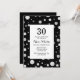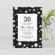 Clássica desenhada com fundo preto, os detalhes modernos de platina, prata e bolinhas acrescentam uma sensação arejada e divertida. Lindos mas simples, esses convites são perfeitos para honrar o aniversário especial de seu amado chegando aos 30 anos. Aproveite a qualidade do design e torne seu evento memorável. Este convite é o equilíbrio perfeito entre sofisticação e diversão!