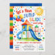 Prepare-se para celebrar com o nosso convite de aniversário no playground! Este belo convite captura a alegria e entusiasmo de um dia no playground, perfeito para a próxima festa de aniversário do seu filho ou qualquer evento ao ar livre. O design apresenta uma vibrante cena de playground com slides, equipamento de subida e balanços, convidando crianças a correr, pular, deslizar e brincar! As cores primárias brilhantes e ousadas dominam o convite, criando uma atmosfera alegre e viva. Balões festivos flutuam no ar ao lado de um sol radiante, acrescentando um toque extra de celebração e calor. Quer você esteja planejando uma festa de aniversário, piquenique, ou qualquer reunião ao ar livre, nosso convite do parque define o tom perfeito para um dia inesquecível de diversão e riso. Encomenda agora e deixe a aventura começar!