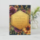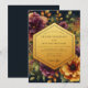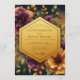 Embrace a dramatic and opulent mood with this stunning botanical design. Against a deep, dark backdrop, a lush arrangement of painterly blooms unfurls in vibrant shades of plum, magenta, and warm marigold. Golden-hued foliage adds a touch of luminosity, creating a rich and romantic aesthetic for your special day.