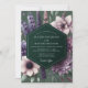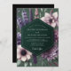 Immerse your special day in an atmosphere of enchanted romance with this elegant design. A lush arrangement of painterly anemones and lavender lupines blooms against a deep emerald green background. The sophisticated palette of rich plum, soft mauve, and pale ivory creates a dramatic and unforgettable botanical statement for your union.