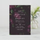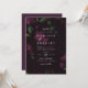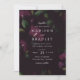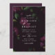 Convites florais elegantes com detalhes de seu casamento com um fundo sangrento de flores de ameixa escura e folhas verdes. O convite reverte para um fundo sólido e escuro de cor de ameixa. Projetado para coordenar com a nossa coleção de casamento Dark Plum Floral.