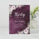Pintado de cor d'água, floral botânico e verde em cor rosada poeirenta rústica, burgundy e cinza em fundo de cor d'água roxa de ameixa com roteiro "Trinta e Fabuloso", convites de festas de aniversário de 30 anos modernos e elegantes.