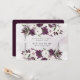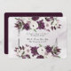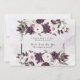 Design apresenta um elemento floral impresso em tons roxos, violetas, lilases e brancos sobre folhas de folhagem rosas e pedras sobre um fundo de aquarela roxo. Excelente para as comemorações do casamento!
